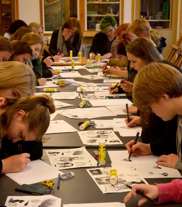 I verkstedet skal elevene med andre ord skrive sine egne tekster med bildene som utgangspunkt og produsere små billedbøker. Formålet er å utvikle deres tegne- og skriveferdigheter, samt gi dem kunnskap om håndverk og originalitet.