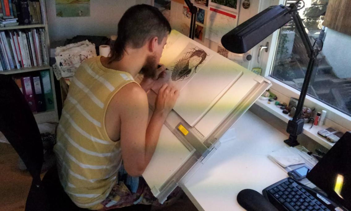 Velkommen inn til bokkunstens eventyrlige univers! En bokillustratør produserer bilder med et budskap. I dette verkstedet skal elevene fremkalle et personlig budskap gjennom egne tekster og håndmalte bilder. Verkstedet blir ledet av Illustratøren Chris Stonehill. Han er fra England, men bosatt i Kristiansand. Ved hjelp av strategiske virkemidler som f.eks. tusjmaling og billedutsnitt, skal de finne unike motiver som kan fortelle ulike historier.Hver elev har sin særegne strek, og hver illustrasjon er som et eget lite kunstverk med et personlig uttrykk.
